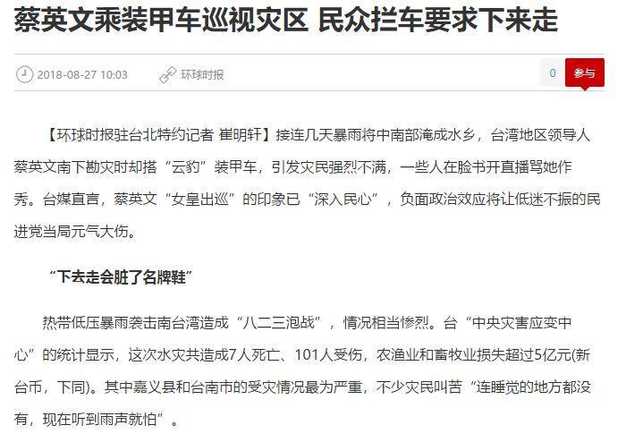 报道中★★★,蔡英文勘灾被灾民痛骂作秀★★、“下去走会脏了名牌鞋”★、是★★“女皇出巡”这些说法都是引用台媒报道★、台湾网友说法★★★。这样的客观报道★,有什么问题么?