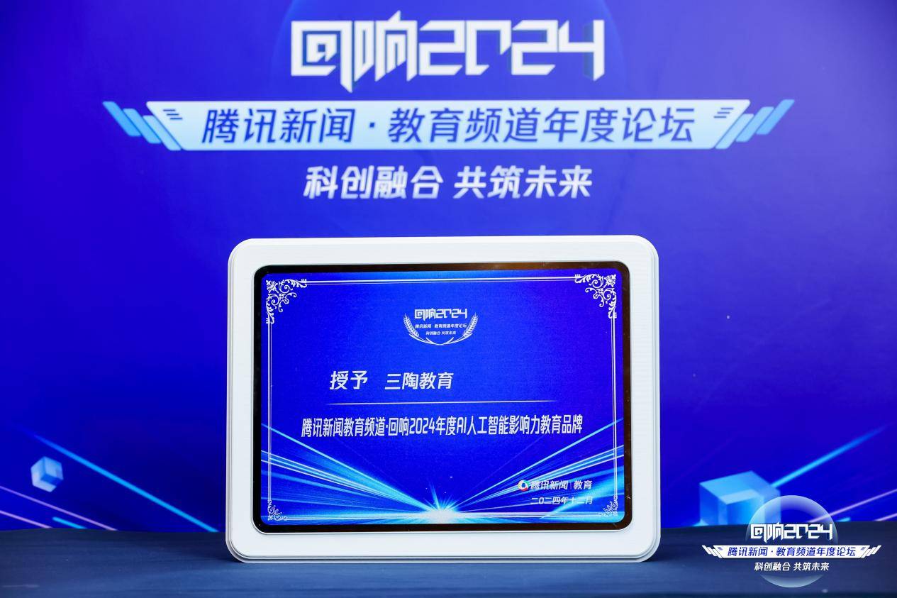 2024年12月5日★,“回响2024”腾讯新闻·教育频道年度论坛于在北京万达文华酒店举办,本届论坛以★★“科创融合★★★,共筑未来”为主题,旨在回顾过去一年教育领域的成就,并探索科技与教育结合的新趋势。三陶教育受邀参与盛会★★,获评2024年度“AI人工智能影响力教育品牌★★”。